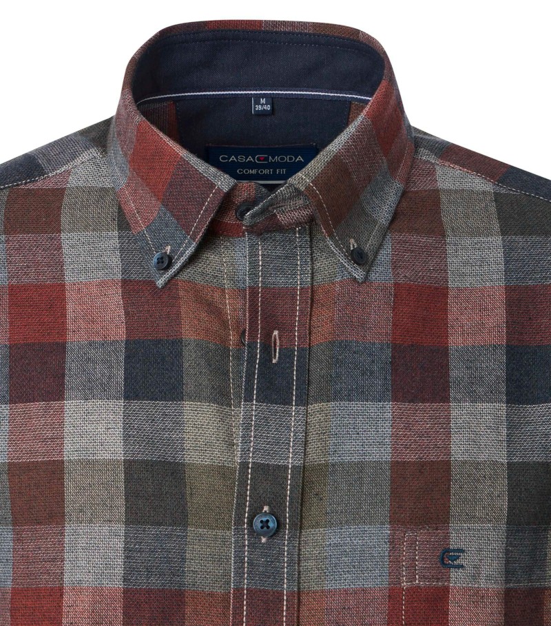Ein warmes sportives Freizeithemd mit Button-Down Kragen aus 100 % Baumwolle mit trendigem Blockkaro in mehrfarbig gemustert mit braun