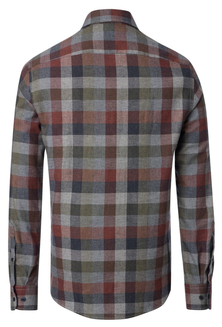 1/1 Arm Flanell -Freizeithemd in mehrfarbig kariert mit brau