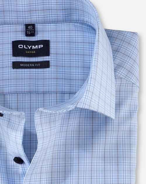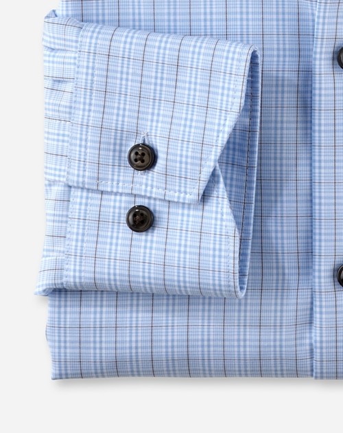 Das harmonisch und dezent abgestimmte Karo mit Akzent auf Bleu sorgt für Abwechslung im Business-Style. Sportiv geschnitten als LUXOR Hemd aus feinen Baumwollgarnen ist angenehm glatt, hautsympathisch, atmungsaktiv sowie bügelfrei mit offenem Global Kent Kragen