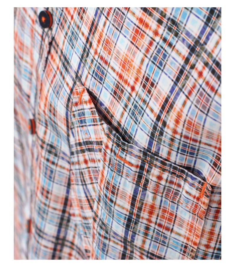 Ein sportives Freizeithemd mit Button-Down Kragen das in kariert mit orange designt wurde