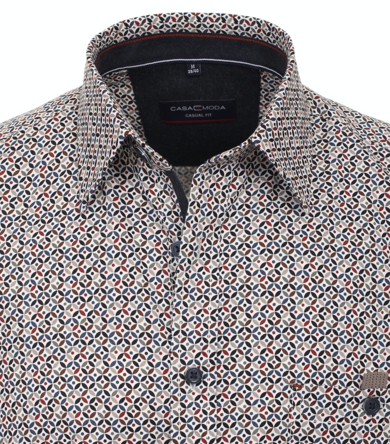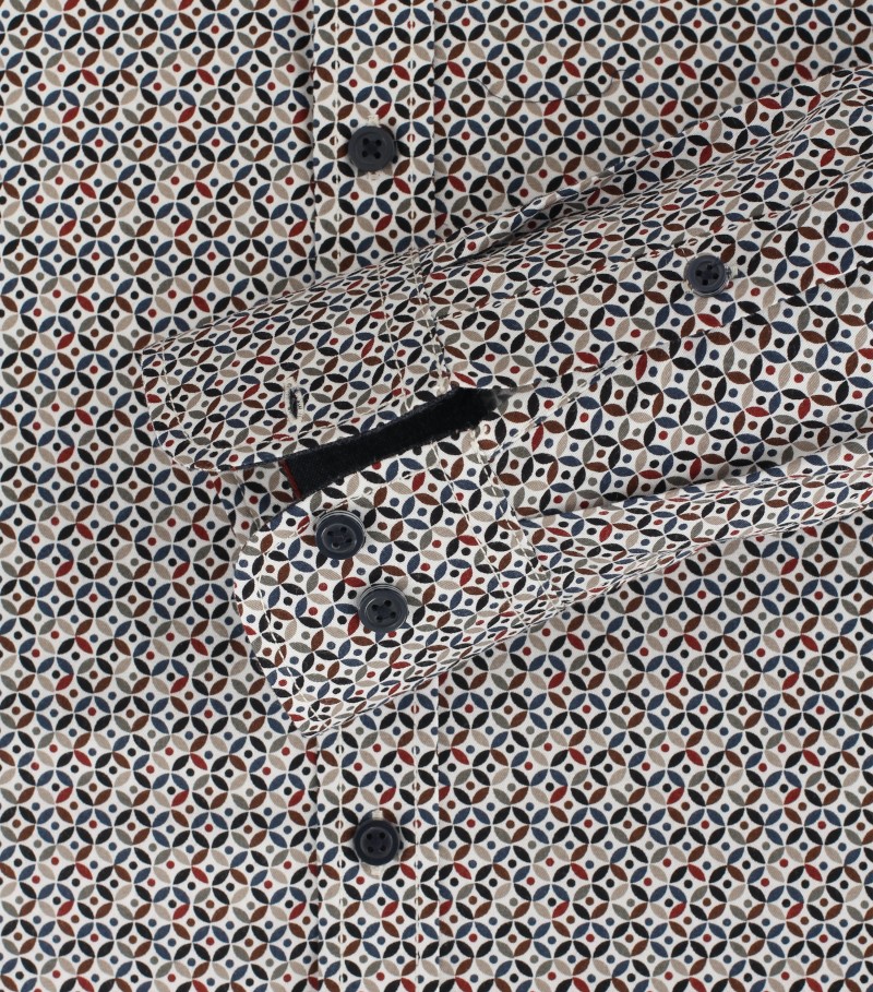 1/1 Arm Freizeithemd in mehrfarbig fein gemustert mit rot