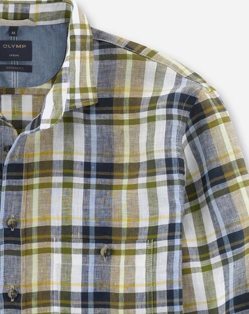Produktinformationen "1/1 Arm Leinen Freizeithemd in grün kariert"