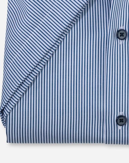 Das sportive 1/2 Arm Hemd mit urban kent Kragen wurde mit feinen dunkel blauen Streifen designt. Als modern fit / etwas schmaler geschnitten sowie in LUXOR Qualität ist dieses Hemd zudem sehr pflegeleicht und bügelfrei aus hochwertiger reiner Baumwolle