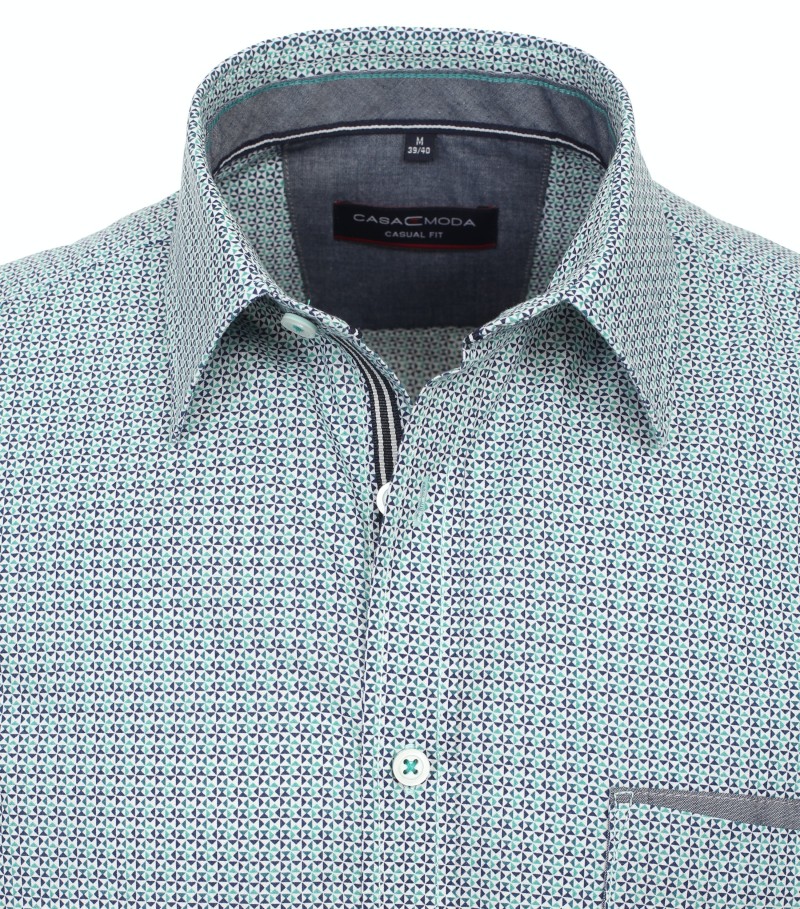 Das sportive 1/2 Arm Freizeithemd mit Kent Kragen wurde mit minimal Dessin in mint grün designet und ist ein echter Hingucker. Als CASUAL FIT ist das Hemd nur minimal schmaler geschnitten
