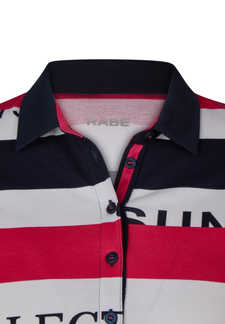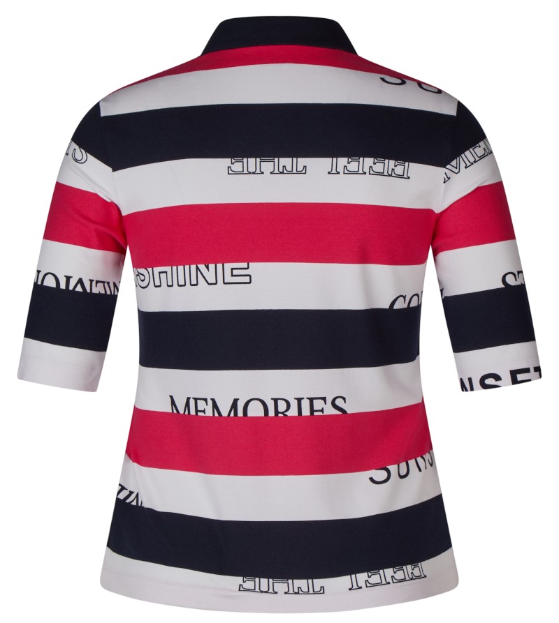 Das sportive Polo-Shirt mit 1/2 Arm wurde neben dem Blockstreifen modisch bedruckt