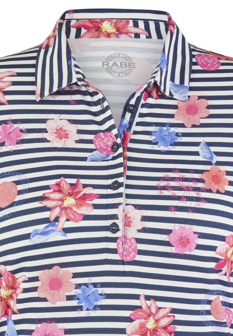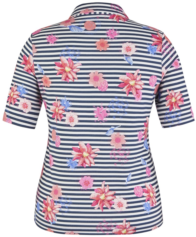 Das sportive Polo-Shirt mit 1/2 Arm wurde mit floralem Dessin designt und ist immer leicht zu kombinieren