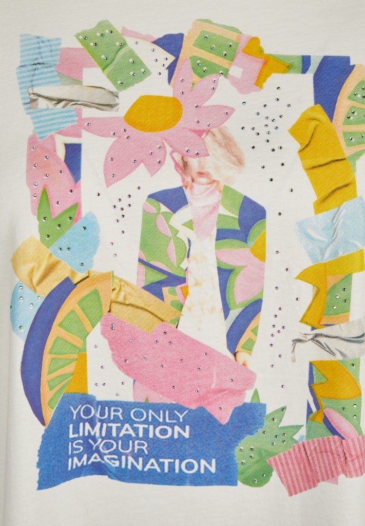 Ein Shirt zum verlieben - in natur mit rundem Ausschnitt und 1/2 Arm. Der romantische Print sowie die Perlen vorne verleihen diesem Shirt in oversize aus 100 % Baumwolle einen besonderen Touch