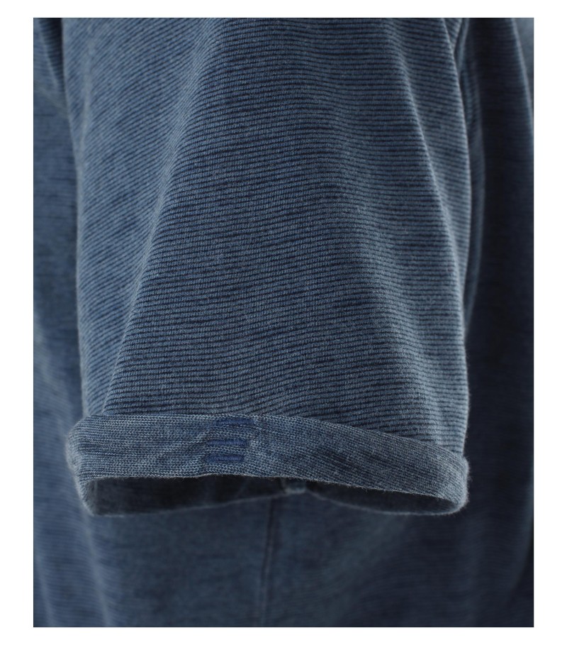 Das sportive T-Shirt mit feiner Struktur in Vintage mittel blau wurde mit runden Ausschnitt zum knöpfen gefertigt
