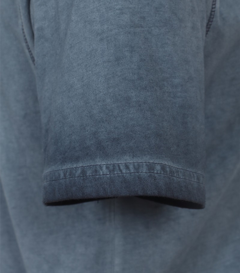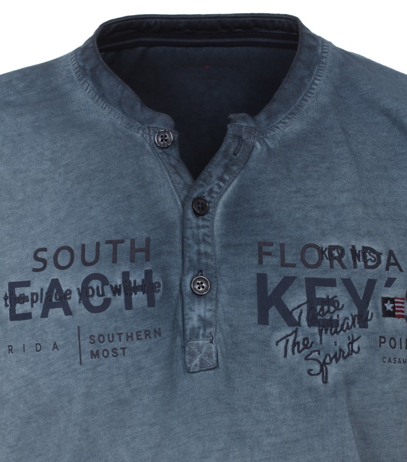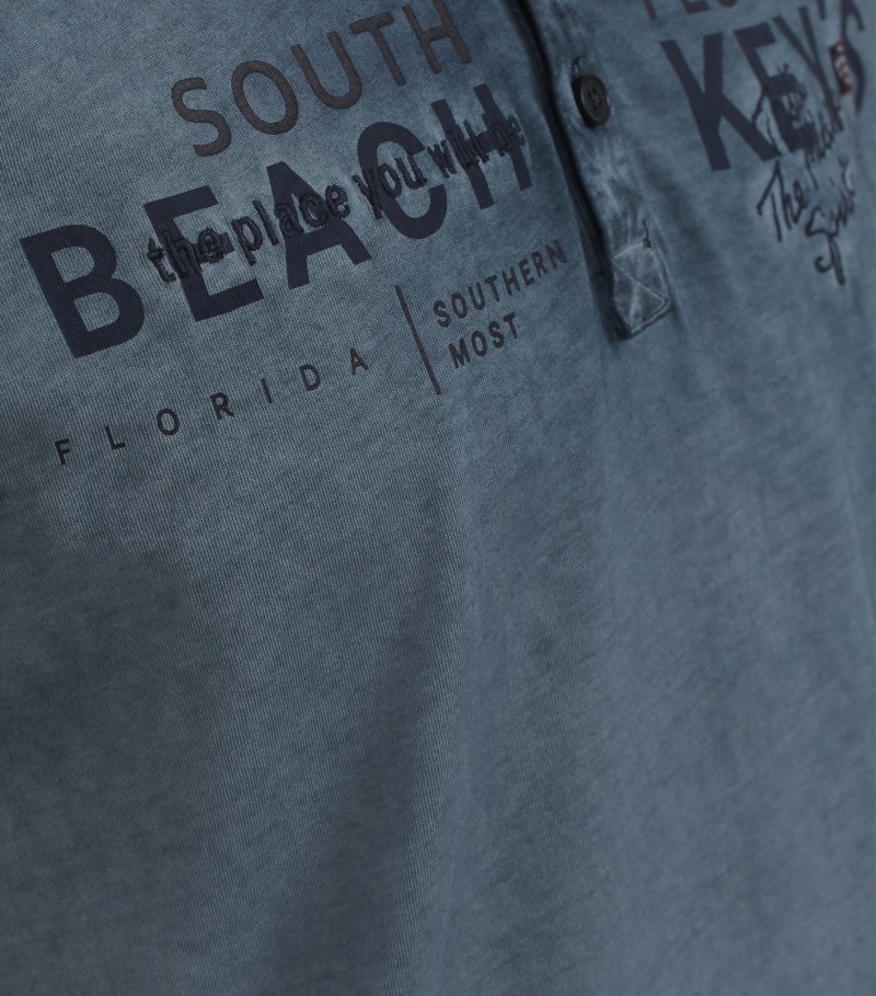 Dieses spotive T-Shirt mit 1/2 Arm wurde in vintage blau-petrol mit dezentem Print sowie zum knöpfen designt