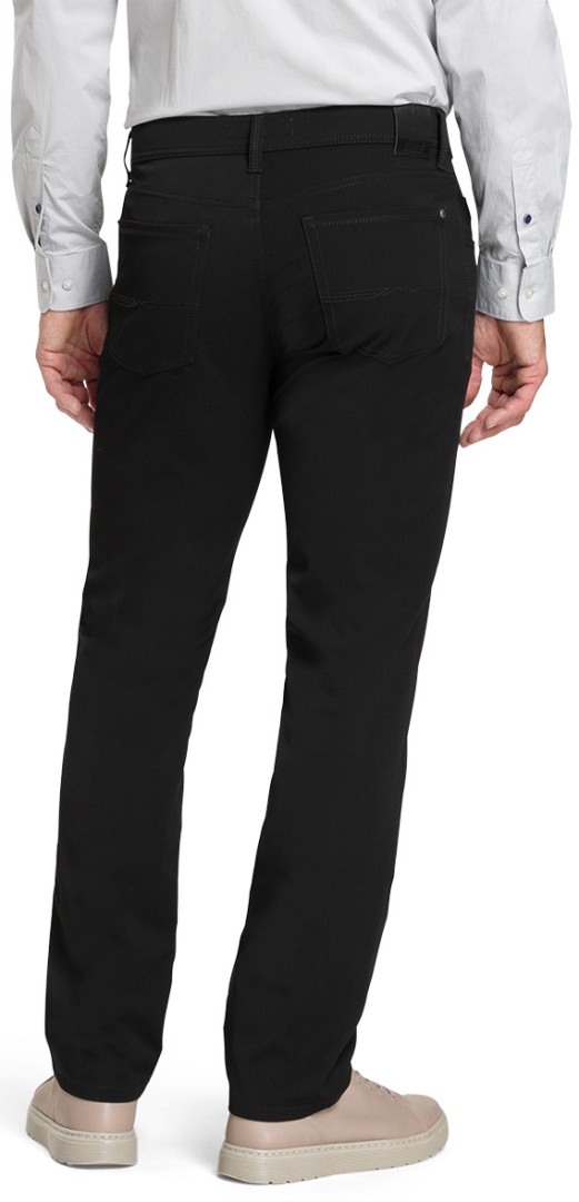 Die 5-pocket Hose in schwarz wird auch als wasch & wear bezeichnet. In bi-stretch Gabardine Qualität ist diese Hose extrem pflegeleicht. Gerade geschnitten als Regular Fit mit normalem Beinverlauf und Leibhöhe ist dieser Artikel ein Zwischending von normaler Stoffhose und Jeans und deshalb zu vielen Gelegenheiten kombinierbar