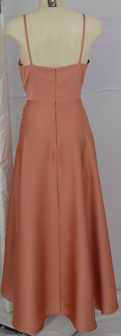 Das traumhafte midi lange Ballkleid wurde in ginger spice mit dezentem Glanz im Vokuhila Style designt und ist ein echter Hingucker