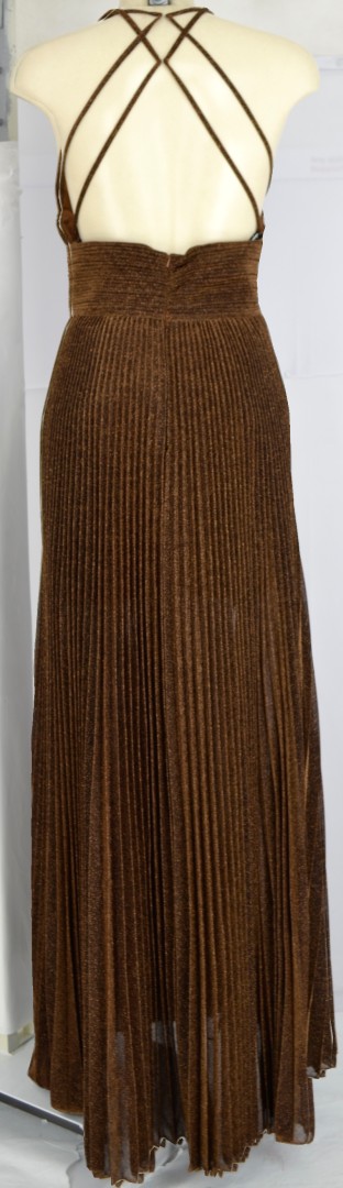 Dieses lange Ballkleid wurde in brown mit dezentem Glanz designt. Allover in dezente Falten gelegt sowie mit Herzcorsage und passemem Tuch aus mesh ist das Modell ein echter Hingucker für den ganz besonderen Anlass. Auch die offene Rückenpartie macht dieses Kleid zu etwas besonderem