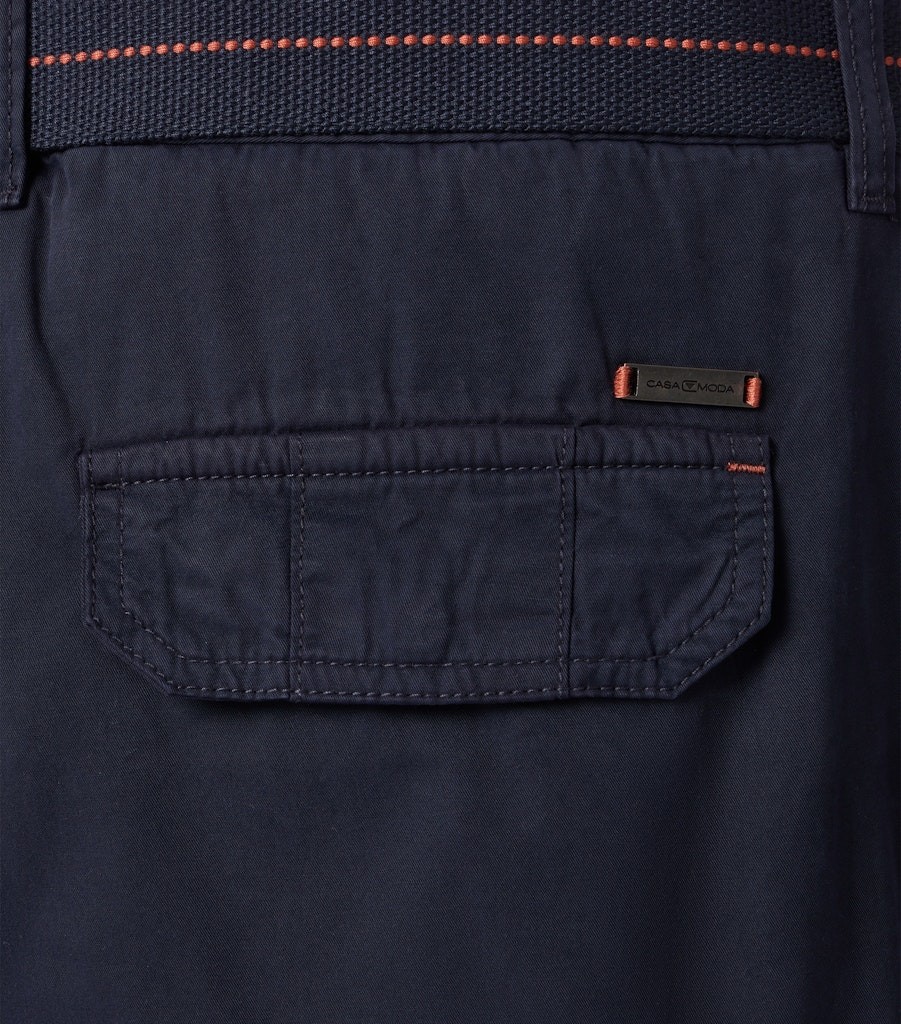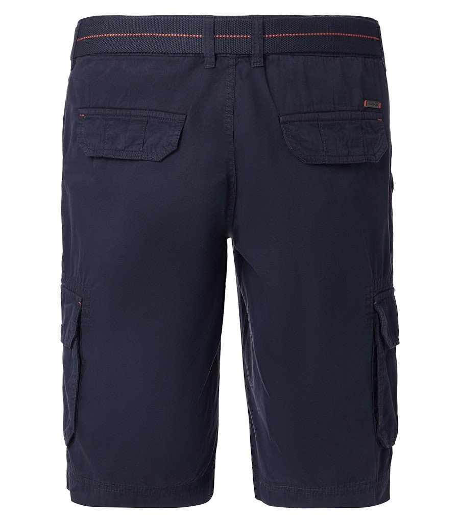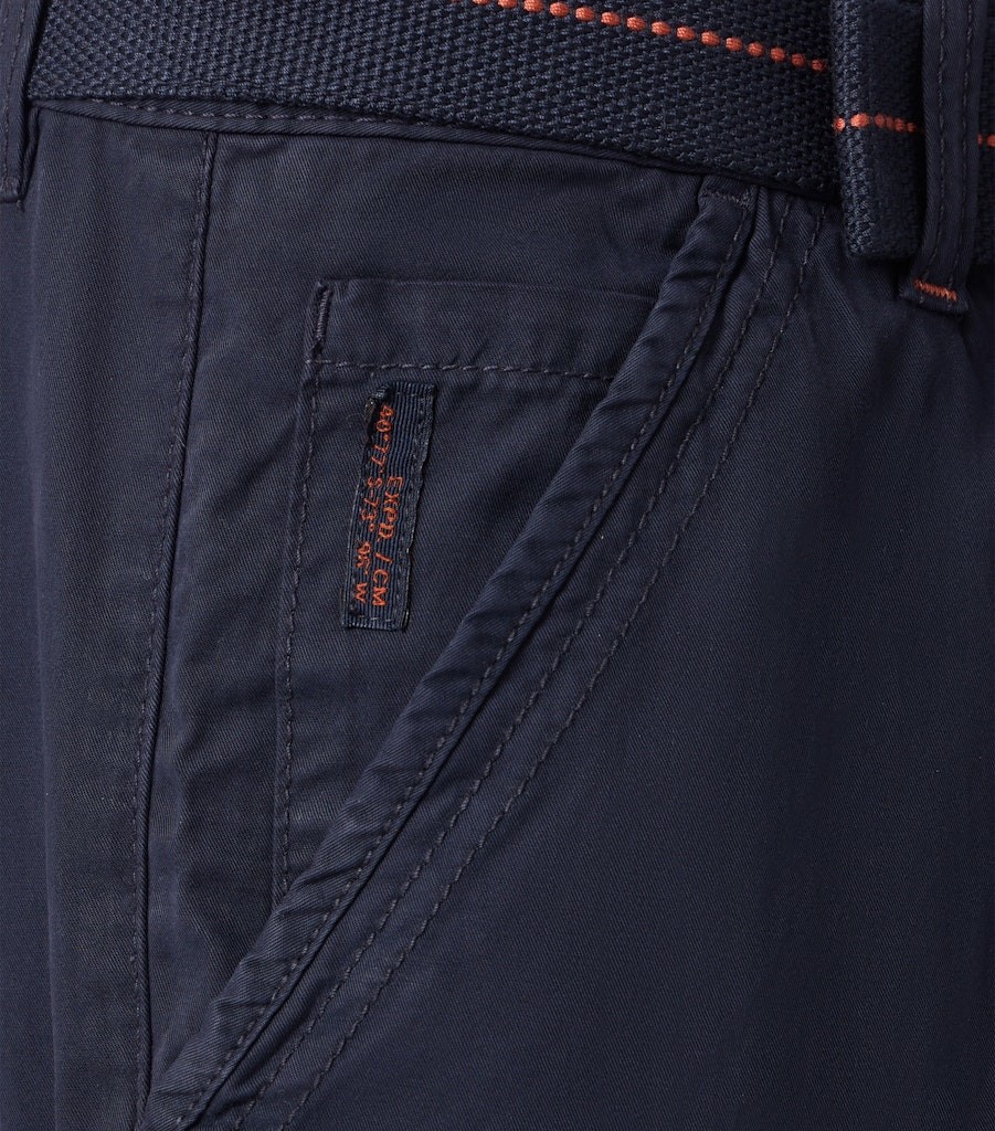Die sportive Bermuda als Cargo / mit seitlich aufgesetzten Taschen wurde in dunkel blau designt. Viele interessante Details sowie die Qualität aus reiner Baumwolle machen diese Hose mit breitem Stretch Gürtel zum echten Allrounder