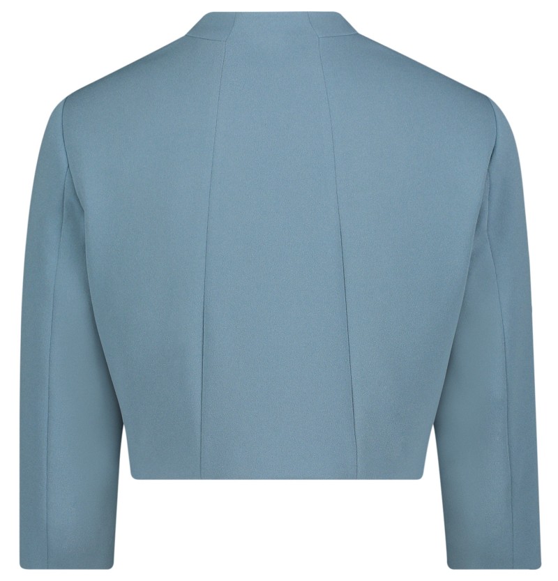Diese edle Blazer-Jacke wurde mit verkürzter Länge in blue dust designt. Mit 3/4 Arm und dem Verschluss aus Haken und Öse lässt sich diese Jacke auch zu den besonderen Anlässen kombinieren
