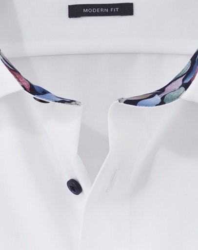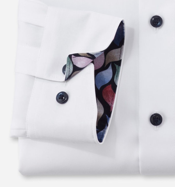 Dieses Hemd in LUXOR Qualität -also bügelfrei und in reiner Baumwolle wurde mit blauen Knöpfen und kontrastivem Print-Innenbesatz sowie Global Kent Kragen designt. Die innovative OLYMP Luxor Faser ist zudem atmungsaktiv, dehnbar,schnelltrocknend und Temperatur-und feuchtigskeitsregulierend