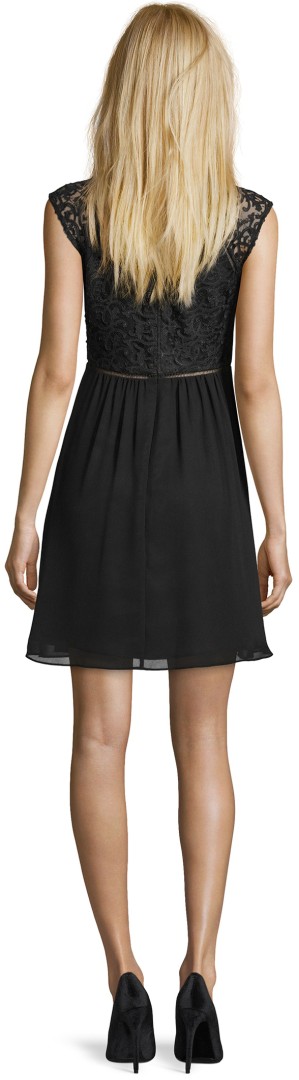 Dieses romantische Cocktailkleid wurde in jet black designt. Mit leicht ausgestellter Passform sowie leicht transpareten überschnittenen Armen ist dieses Modell immer die richtige Wahl