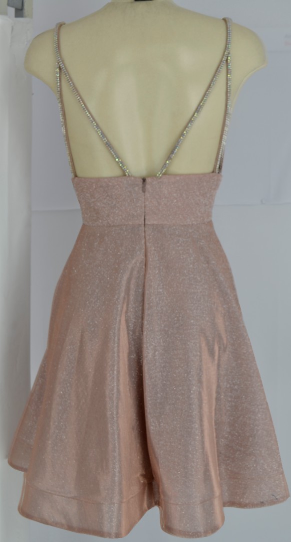 Dieses romantische kurze Kleid wurde in rose mit Herzcorsage sowie leicht ausgestelltem Rockteil designed. Allover in Glanz versehen vermitteln auch die mit Strass besetzten Träger einen ganz besonderen Charme für Ihre Anlässe