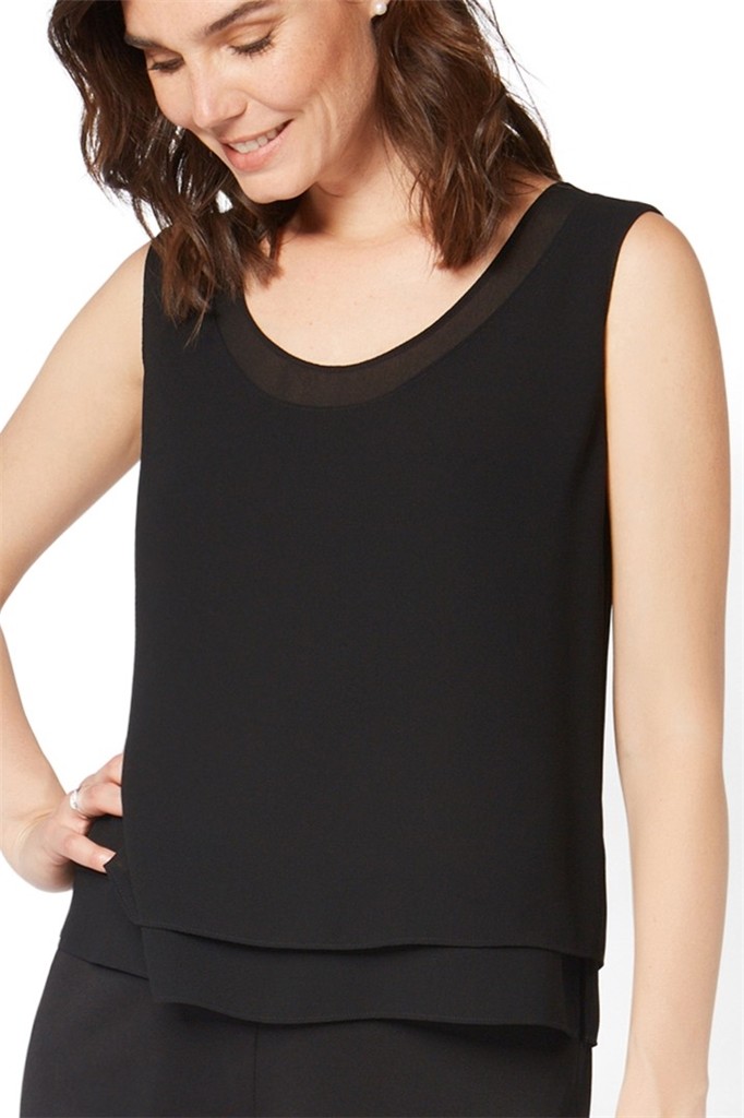 Dieses edle Top in uni schwarz wurde doppellagig aus feinem Chiffon gefertigt und kann auch zu Ihren besonderen Anlässen getragen werden