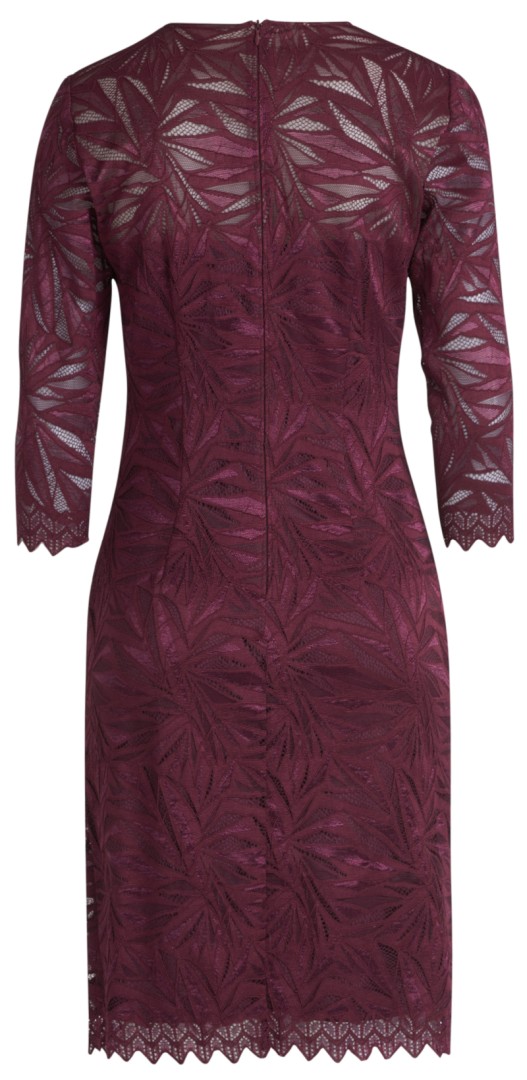 Das edle mittellange Kleid wurde in burple-breeze (beere) designt. Die feine Ausmusterung im Jacquard Style sowie der V-Ausschnitt und der leicht transparente 3/4 lange Arm machen dieses Modell zum echten Hingucker für die besonderen Anlässe
