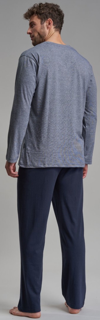 Herren Pyjama lang in grau-blau meliert