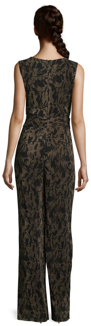 Dieser Overall mit V-Ausschnitt ohne Arm in black-gold wurde aus edlem Feinkrepp gefertigt. In maxi lang mit breitem geknotetem Taillenband und in dezentem Glanz ist dieses Modell einfach perfekt auch für die besonderen Anlässe