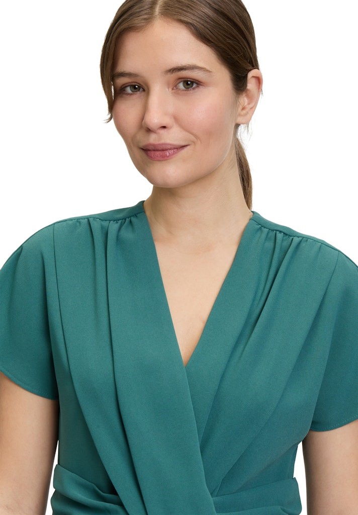 Dieser figurbetonte Overall mit überschnittenem Arm in emerald green wurde aus edlem Feinkrepp gefertigt. In maxi lang sowei mit den zwei seitlichen Taschen sowie dem Taillenband aus Schluppe ist dieses Modell einfach perfekt auch für die ganz besonderen Anlässe