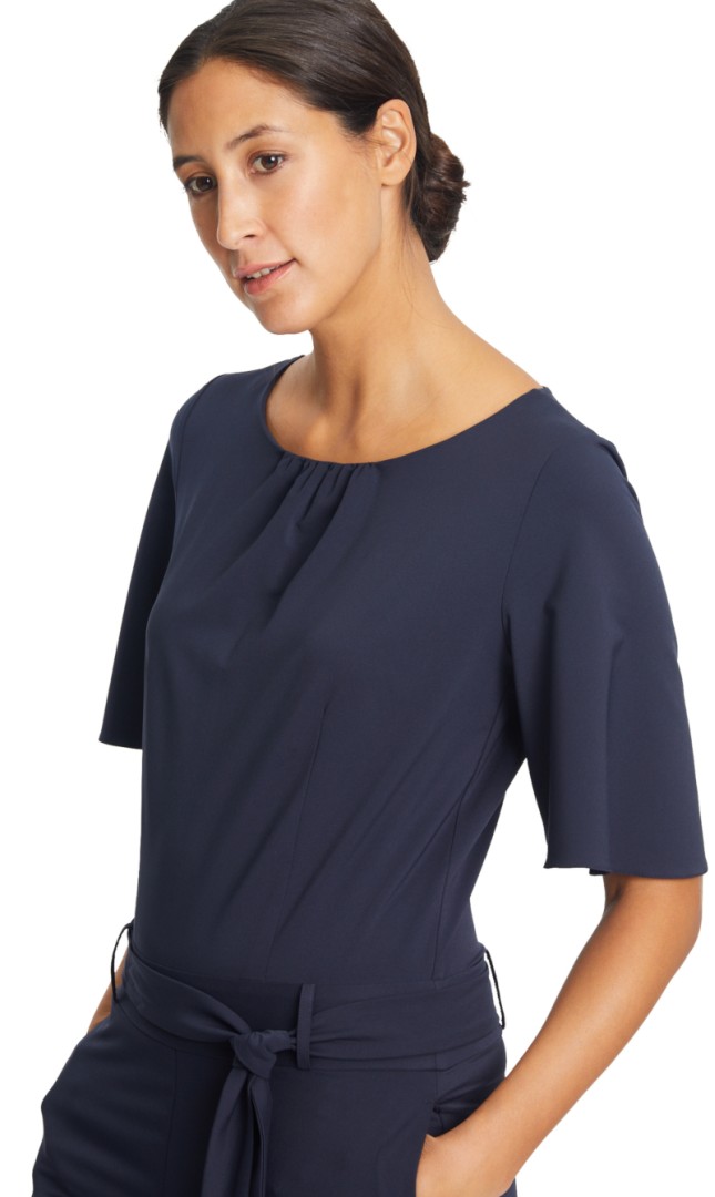 • Geraffter runder Ausschnitt