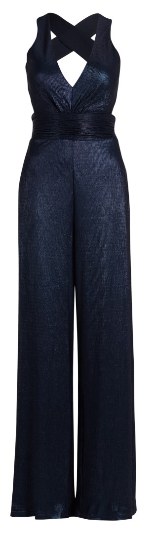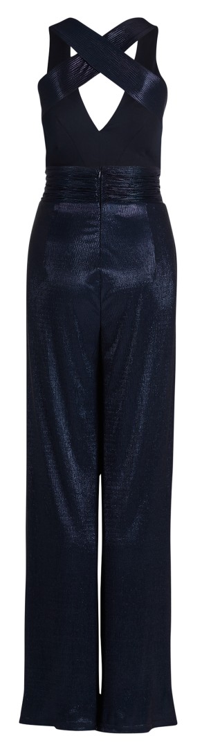 Dieser maxi lange Jumpsuit mit V-Ausschnitt wurde in night sky mit Glanz designt und ist ein echter Hingucker. Leicht Figurbetont mit offenem Rücken sowie breiten Trägern - seitlichen Taschen und einer Fussweiter von 66 cm - Einfach perfekt für Ihren besonderen Anlass