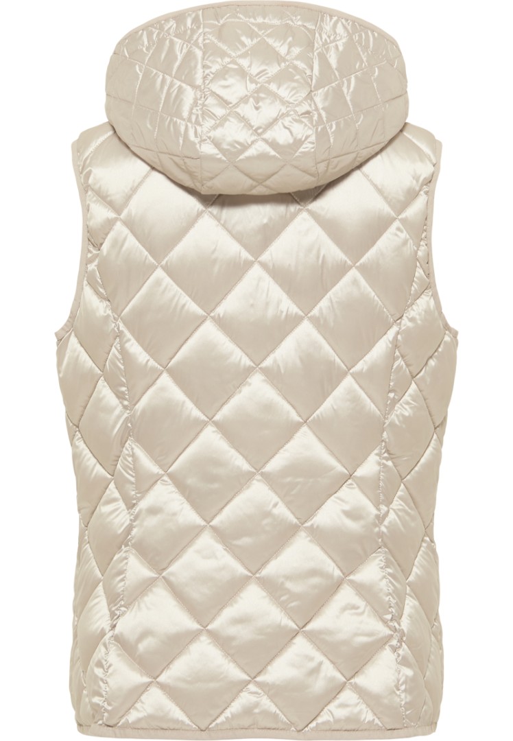 Diese sportiv gesteppt sowie etwas längere Weste in sand mit R-V und abnehmbarer Kapuze lässt sich immer einfach kombinieren und gehört zu den must have der neuen Saison