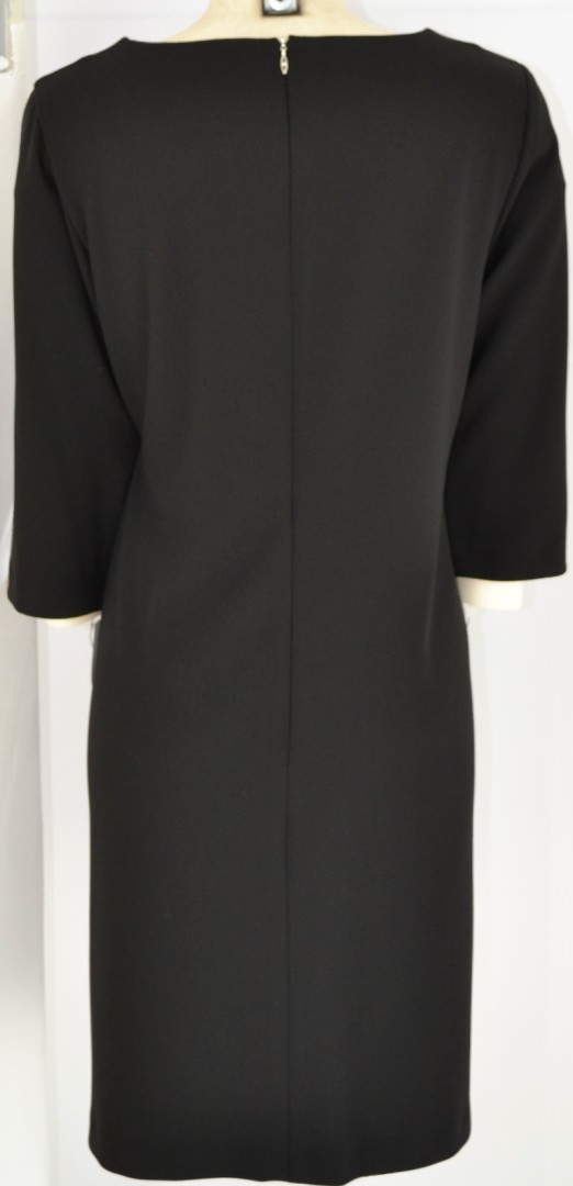 Dieses wunderschöne Kleid mit 3/4 langem Arm und runden Ausschnitt wurde in uni schwarz designt und kann in dieser mittleren Länge und den zwei seitlichen Taschen auch zu den besonderen Anlässen getragen werden