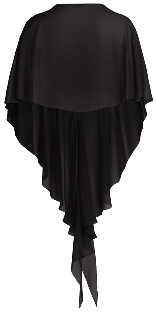 Diese leichte Chiffon Stola kann in schwarz überaus vielseitig eingesetzt werden und ist immer eine modische Ergänzung auch zu schulterfreien Kleidern. Offen getragen oder als Jäckchen geknöpft ist dieses Accessoires einfach ideal