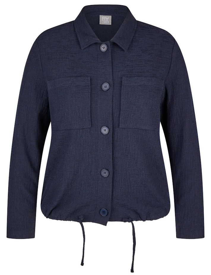Diese top aktuelle leichte Blazer-Jacke wurde in dunkel blau mit dezenter Leinen Struktur sowie als 5 -Knopf Variante mit Kragen designt. Die zwei aufgesetzten Taschen sowie der Tunnel-Gummizug im Abschluss machen diese Jacke zum echten Allrounder
