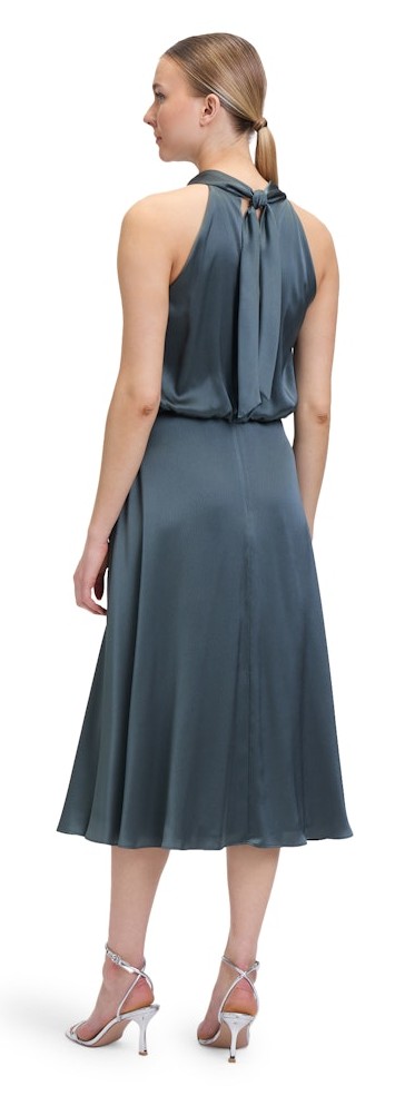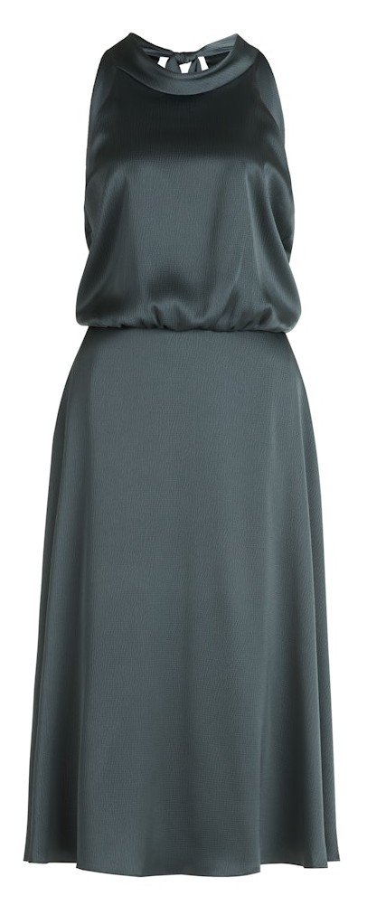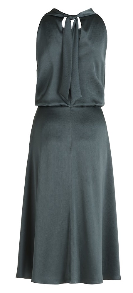 Dieses edle Kleid in grey-olive gehört zu den echten Hinguckern in midi Länge sowie mit amerikanischem Ausschnitt und Neckholder. Auch der leicht glänzende Satin Stoff verleiht diesem Modell das besondere etwas