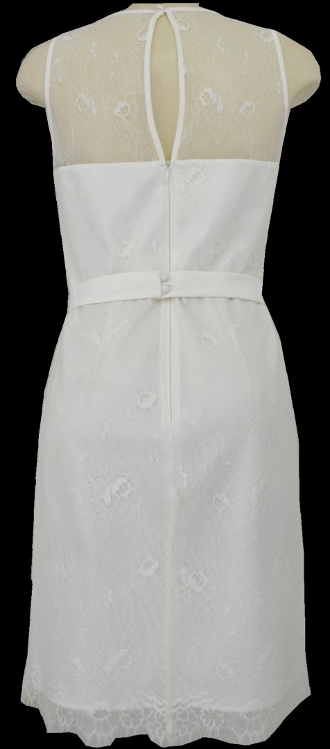 Die feminine Spitze macht dieses Kleid in ivory white zu einem echten Hingucker auch für Ihren schönsten Tag des Jahres. In mittlerer Länge sowie leicht transparent unter dem Ausschnitt ist dieses Modell mit dem abnehmbaren und mit edlen Perlen besetztem Taillenband einfach nur traumhaft