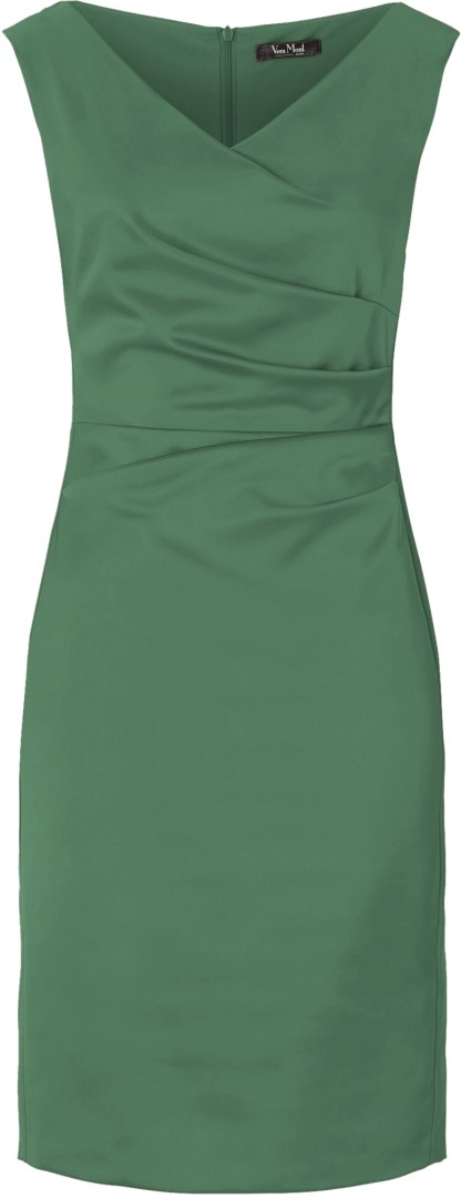 Dieses mittellange Etuikleid wurde in green poison designt und kann nicht nur zu den besonderen Anlässen getragen werden. In edler stretch-satin Qualtität macht dieses Modell mit V-Ausschnitt auch durch die modischen Raffungen in Höhe der Taille immer eine gute Figur