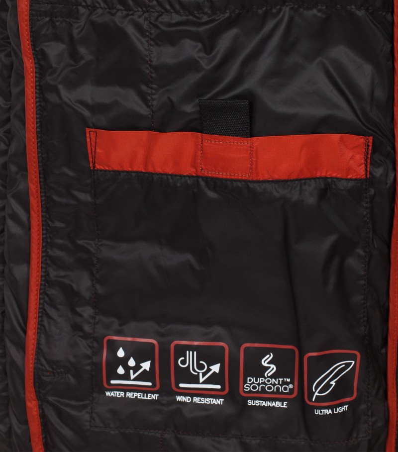 Diese sportive Steppweste wurde in rot-orange mit modischem Kontrast R-V sowie zwei seitlichen Taschen designt. Hochgeschlossen mit Stehkragen ist diese Weste mit FUNKTION überaus vielseitig