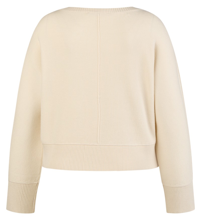 Der top aktuelle Pullover mit rundem Ausschnitt wurde in uni elfenbein mit dezenter Ripp-Optik in verkürzter Länge designt. Die breiten Bündchen machen diesen Pulli zum echten Highlight