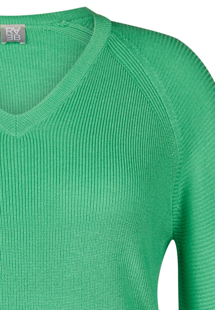 Der sportive Pullover wurde mit V-Ausschnitt in turmalin (grün) designt. Auch die feine Rippen Optik an den Armen verleiht diesem Pulli einen zusätzlichen Charme