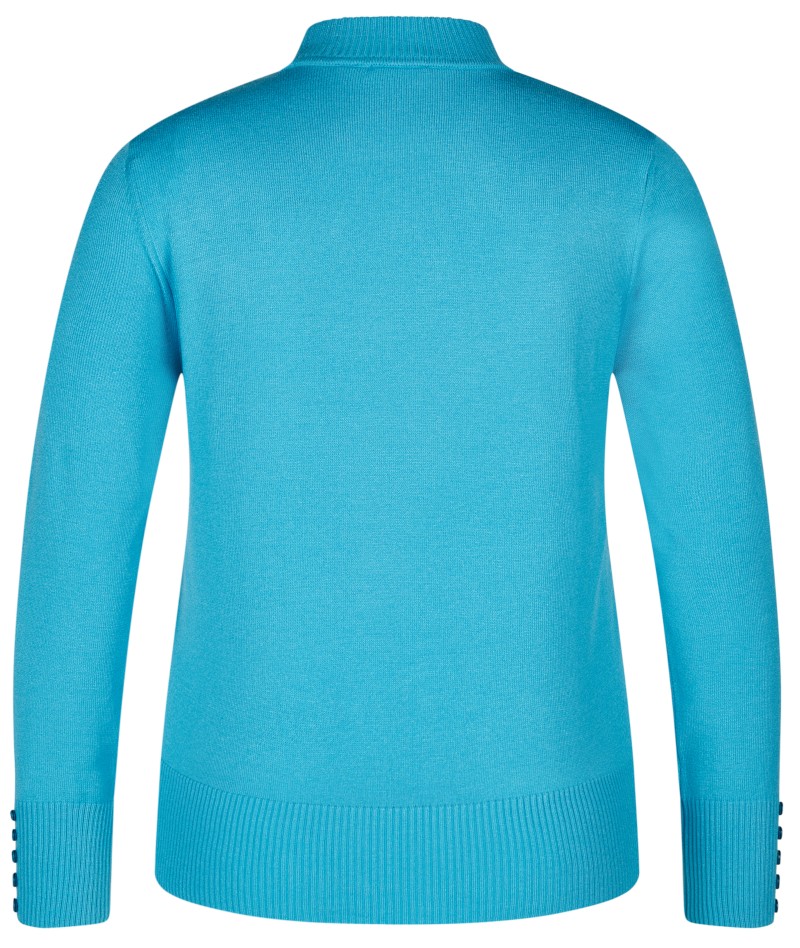 Dieser sportive Pullover wurde mit breitem Bündchen im Abschluss sowie Turtle Kragen in uni türkis designt
