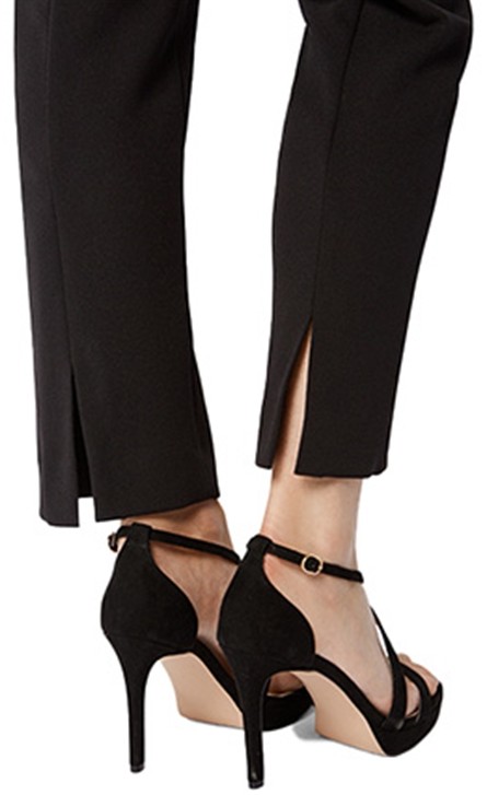 Diese schmal geschnittene Hose in schwarz mit Gummibund und kleinem Schlitz am Fuß hat auch durch den Anteil von Elasthan eine ideale Passform und kann selbst zu den besonderen Anlässen getragen werden