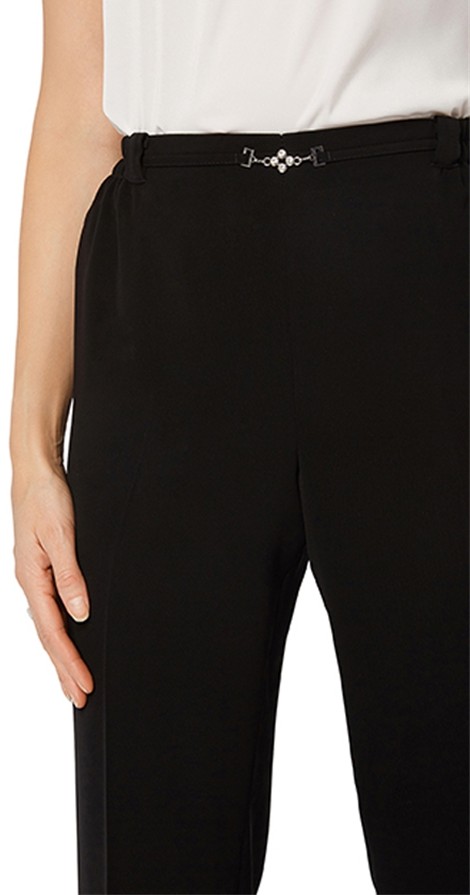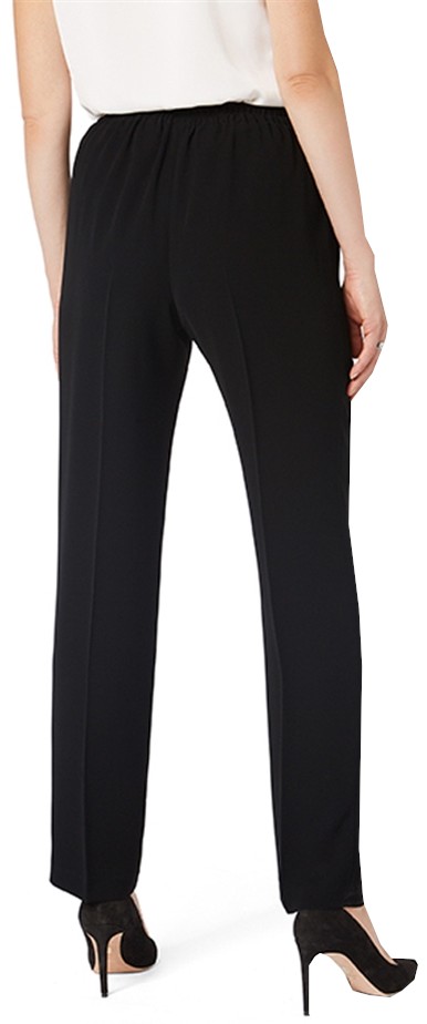 Diese hochwertige schwarze Hose aus Microfaser ist nicht nur pflegeleicht und knitterarm sondern macht in der schmalen Passform immer eine gute Figur. Auch mit der Verzierung vorne und dem Beinabschluss ohne Schlitz sowie mit dem Rundum-Gummizug lässt sich diese Hose in kurzen Größen zu fast allem und zu allen Anlässen tragen
