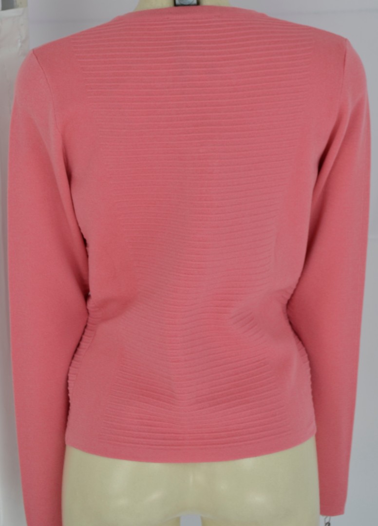Diese edle Strickjacke in leicht verkürzter Länge sowie in uni melone lässt sich immer einfach kombinieren. Als Verschluss mit Haken und Öese sowie in Rippen Optik vorne und seitlich ist die Jacke ein echter Klassiker
