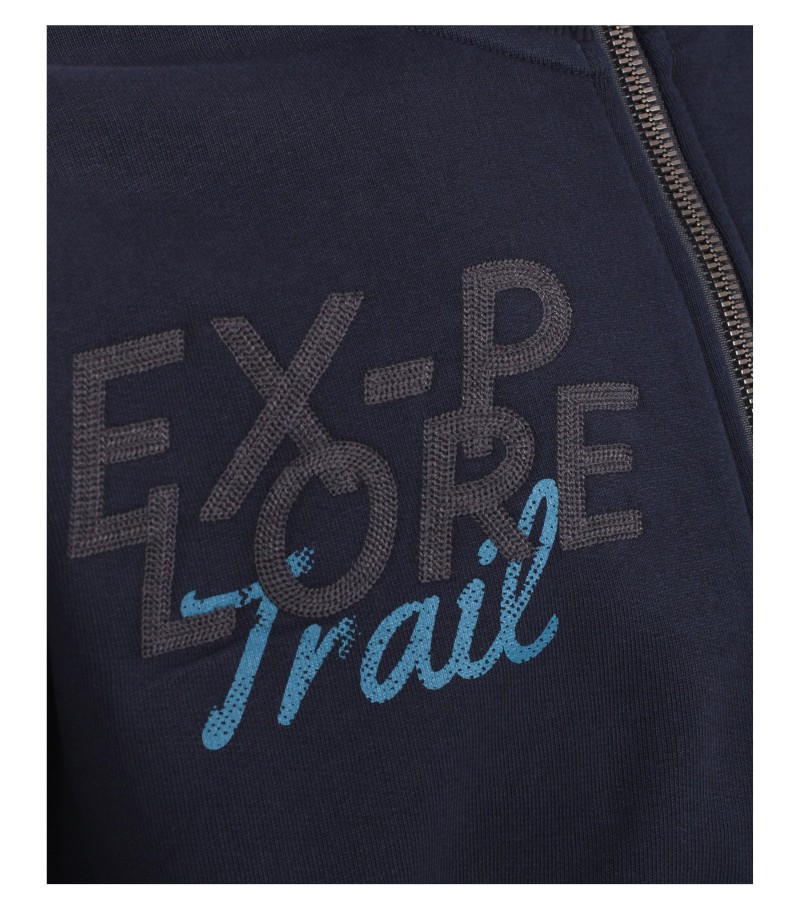 Diese sportive Sweat-Shirt Jacke mit 2 seitlichen Taschen wurde mit R-V und Stehkragen designt. In marine blau mit Print aus 100 % Baumwolle ist diese Jacke immer leicht kombinierbar