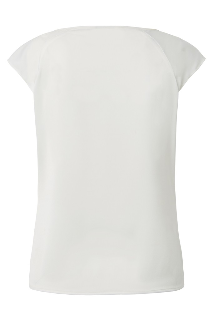 Dieses edle Top wurde in uni marshmallow designt. Mit Schmuckstange sowie überschnittenem Arm und Raffung unter dem runden Ausschnitt lässt sich dieses Modell mit leichtem Glanz auch zu den besonderen Anlässen prima kombinieren