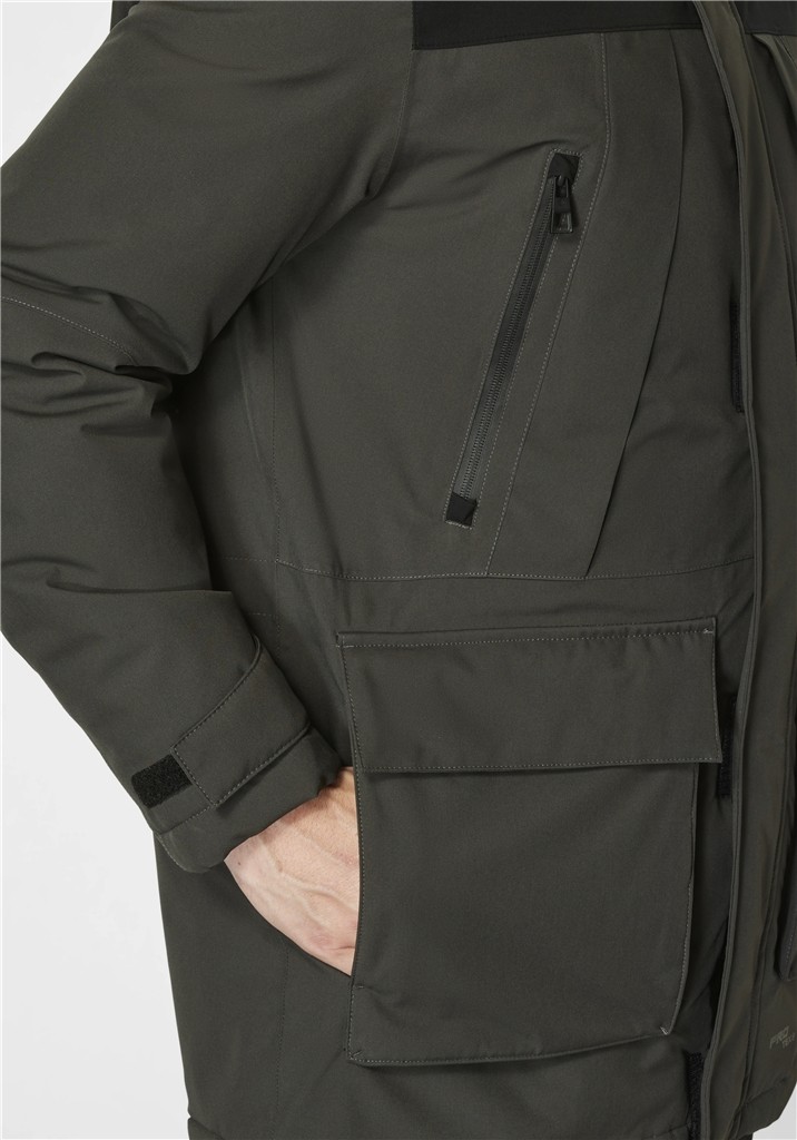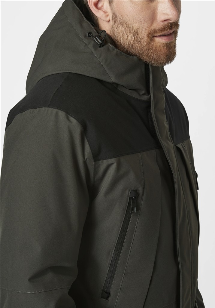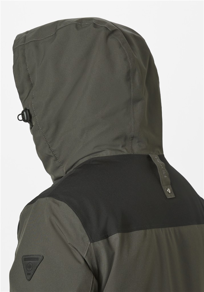 Diese hochwertige Outdoor Jacke wurde in oliv-schwarz mit vielen Details als PRO TEX HIGH FUNKTIONS Jacke also Wasser -und Winddicht designt