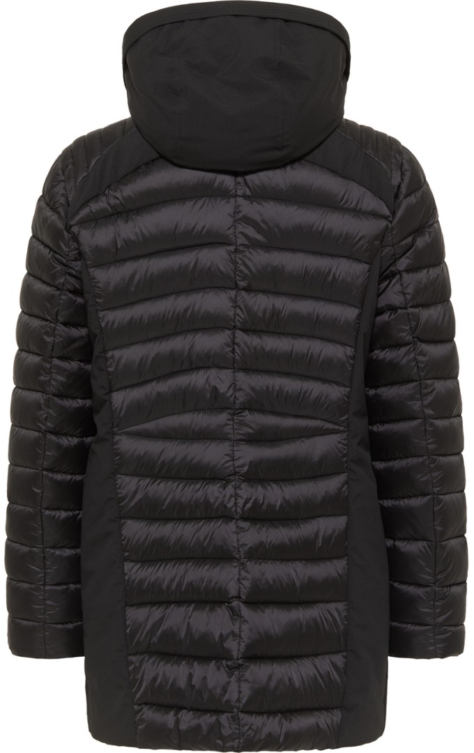 Dieser etwas kürzerer Mantel wurde in uni schwarz gefertigt. Als THERMO - SOFT in Down Optik mit synthetischer Füllung wärmt dieses Modell wie eine Jacke mit echter Daune. Auch hier ist die Kapuze abnehmbar